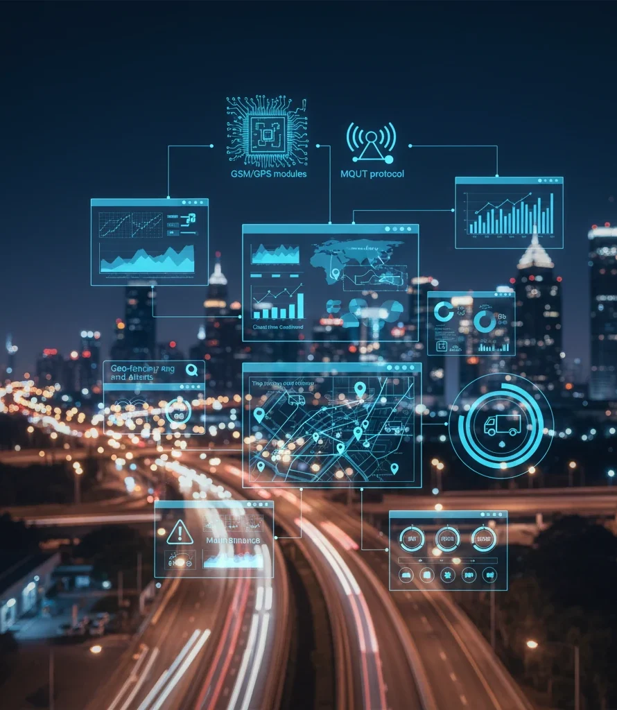 SIOT developed a GPS-based tracking platform integrated with a cloud dashboard, supporting trip history, real-time vehicle movement, geofencing, and predictive maintenance alerts.