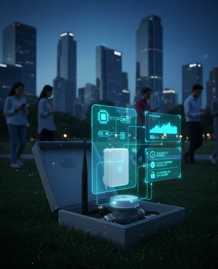 SIOT developed a battery-powered, NB-IoT-enabled module to interface with pulse outputs. The device logs and transmits usage securely, fitting legacy infrastructure.